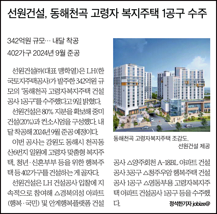 선원건설 최근 수주 내역