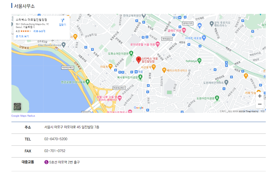 서울 사무소의 위치는 다음과 같습니다..