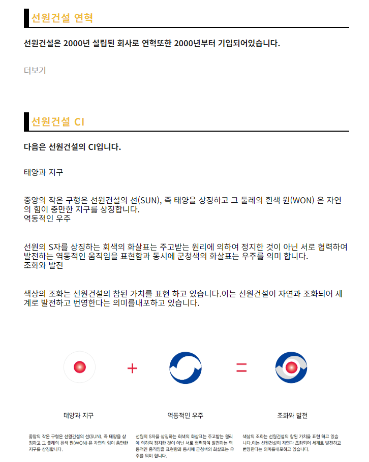 선원건설 개요 및 창립일 등