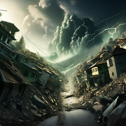 - 6.0~6.9: 굴뚝이 무너지고 집이 흔들릴 정도로, 최대 160km에 걸쳐 건물들이 파괴될 수 있음