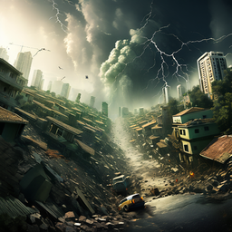 - 6.0~6.9: 굴뚝이 무너지고 집이 흔들릴 정도로, 최대 160km에 걸쳐 건물들이 파괴될 수 있음