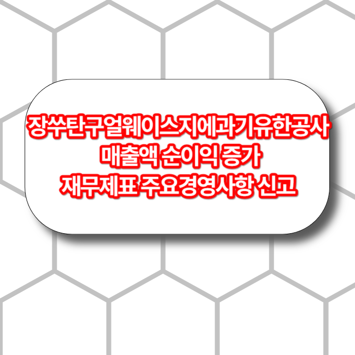 이번 포스팅은 모든정보들의 공시알아보기, 장쑤탄구얼웨이스지에과기유한공사는 매출액이 3.03% 증가하고 순이익이 68.91% 증가했습니다. 이는 그래핀 생산 및 판매 증가와 비용 절감 때문입니다. 에 대해 알아보았습니다.