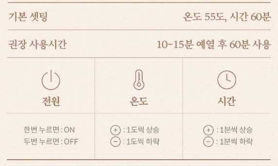 - 기본 기능 외에도 마사지 기능을 제공합니다.