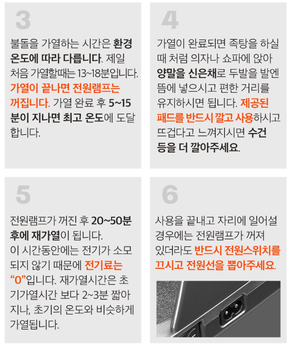 - 적외선 램프: 발에 혈액 순환을 개선하는 데 도움이 될 수 있습니다.